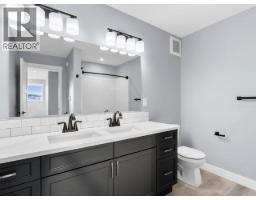 Welcome to this beautiful new home by Eclipse Homes. Offering 2,254 sq ft of thoughtfully designed living space; this 4-bedroom, 2.5-bathroom home combines modern style with everyday functionality. The heart of the home is the stunning modern kitchen, Merit Kitchens painted maple cabinets, white quartz countertops, sleek black accents, and beautiful, wide plank durable composite flooring that flows seamlessly throughout the main level. The spacious living room is perfect for relaxing or entertaining, highlighted by a cozy electric fireplace. Upstairs, you'll find a convenient laundry room with extra storage, along with a large guest bathroom complete with double sinks. The primary bedroom is generously sized and offers a large walk-in closet, while the ensuite impresses with a beautiful oversized walk-in shower featuring double shower heads for a spa-like experience. With modern finishes throughout, a functional layout, and a backyard that backs onto greenspace, this move-in-ready (id:34699)